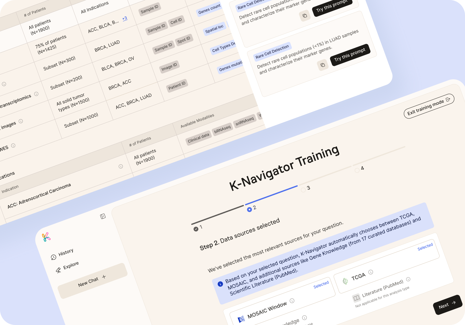 The main goal and challenge for the design was to avoid looking like competitors with their dense, often intimidating interfaces typical of existing scientific software. It was supposed to be a more approachable and user-friendly experience that would also match Owkin's established identity. Feedback from the client’s marketing team led to incorporating warmer, beige tones and using Owkin's existing font for a clearer connection to the brand.