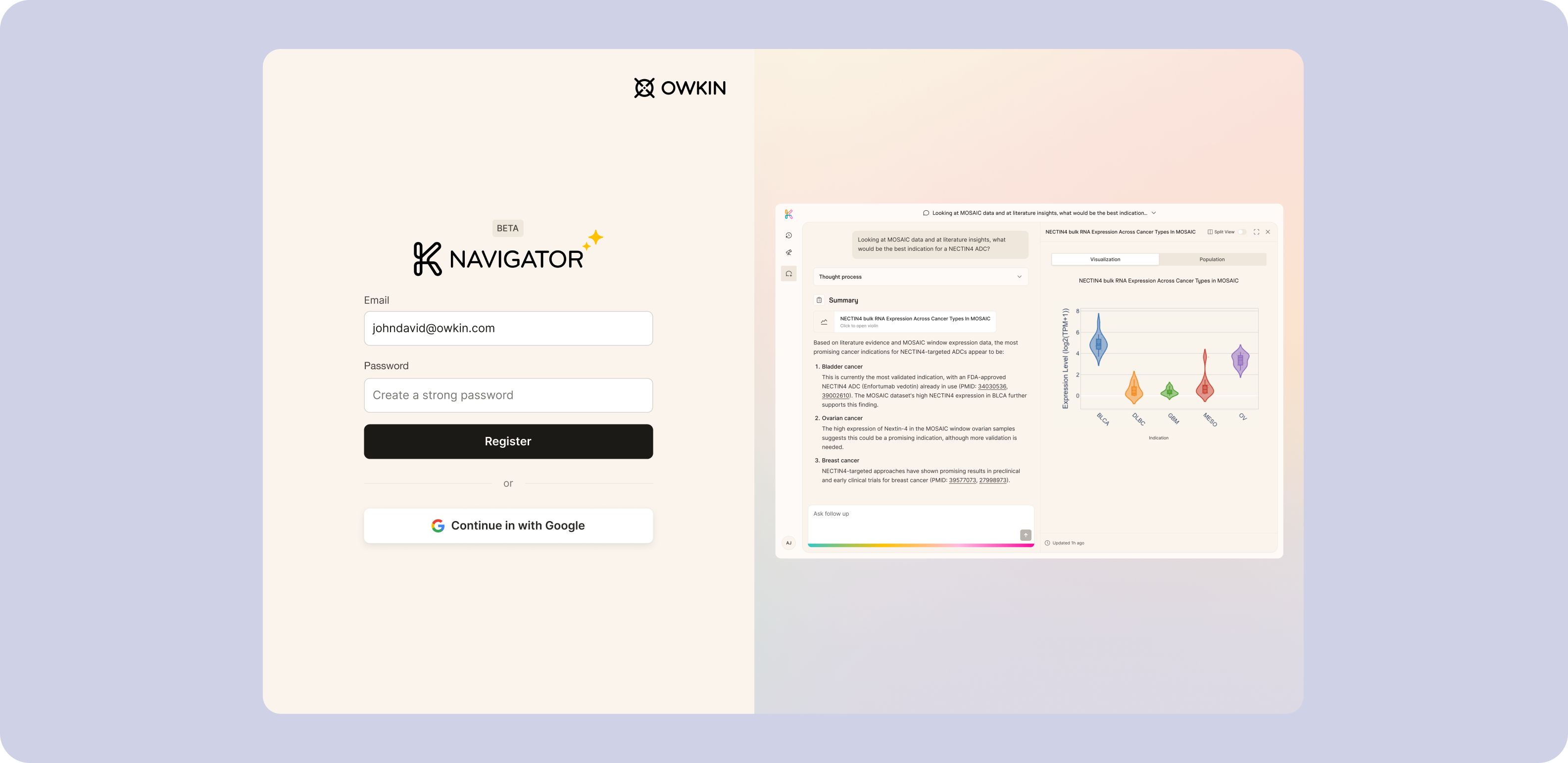 Visit OwkinOwkin's vision was to help biologists in pharma, biotech, and academia better formulate and validate scientific hypotheses. For that, they needed an interface that would merge public and private information, AI-driven insights, and data visualizations. Our Merge team was asked to guide product discovery, design an MVP and a scalable UI system, and prepare materials for the product’s release.